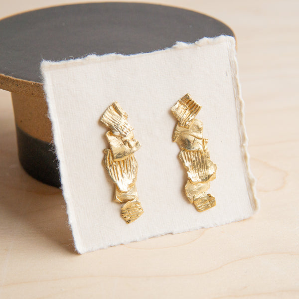 Cast brass earrings with a beautiful organic look and sterling silver posts. Made in New York City by 8.6.4.