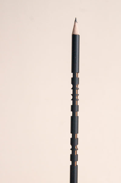 Laser-etched pencils by Swiss design studio Tät-Tat, made from sustainable limewood finished with matte black lacquer and packaged in a paper sleeve. Each sculpted pattern is precision-cut for both feel and visual intrigue — perfect for design lovers, students, or anyone who appreciates artful objects.