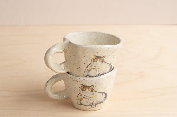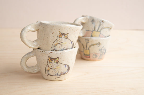 Perfectly sized for espressos or shots, these little pinched logo cups are as whimsical as they are practical. Each is one-of-a-kind and handmade by Noah and Sasha of Juice Ceramics in Jacksonville, FL.