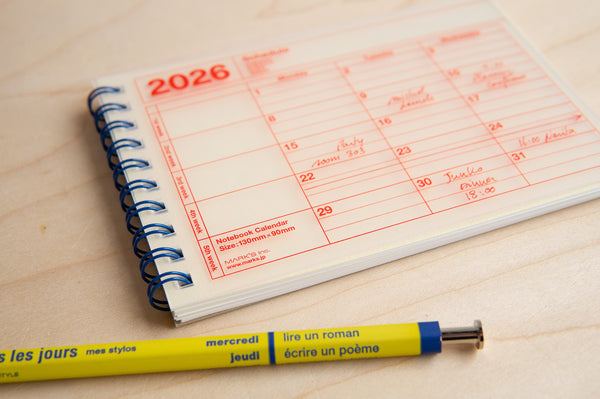A pocket-sized 2026 planner from Japan, featuring monthly pages (Monday-Sunday), extra room for lists and notes, and a lay-flat design. It’s a convenient companion for quick scheduling at home and wherever you go.